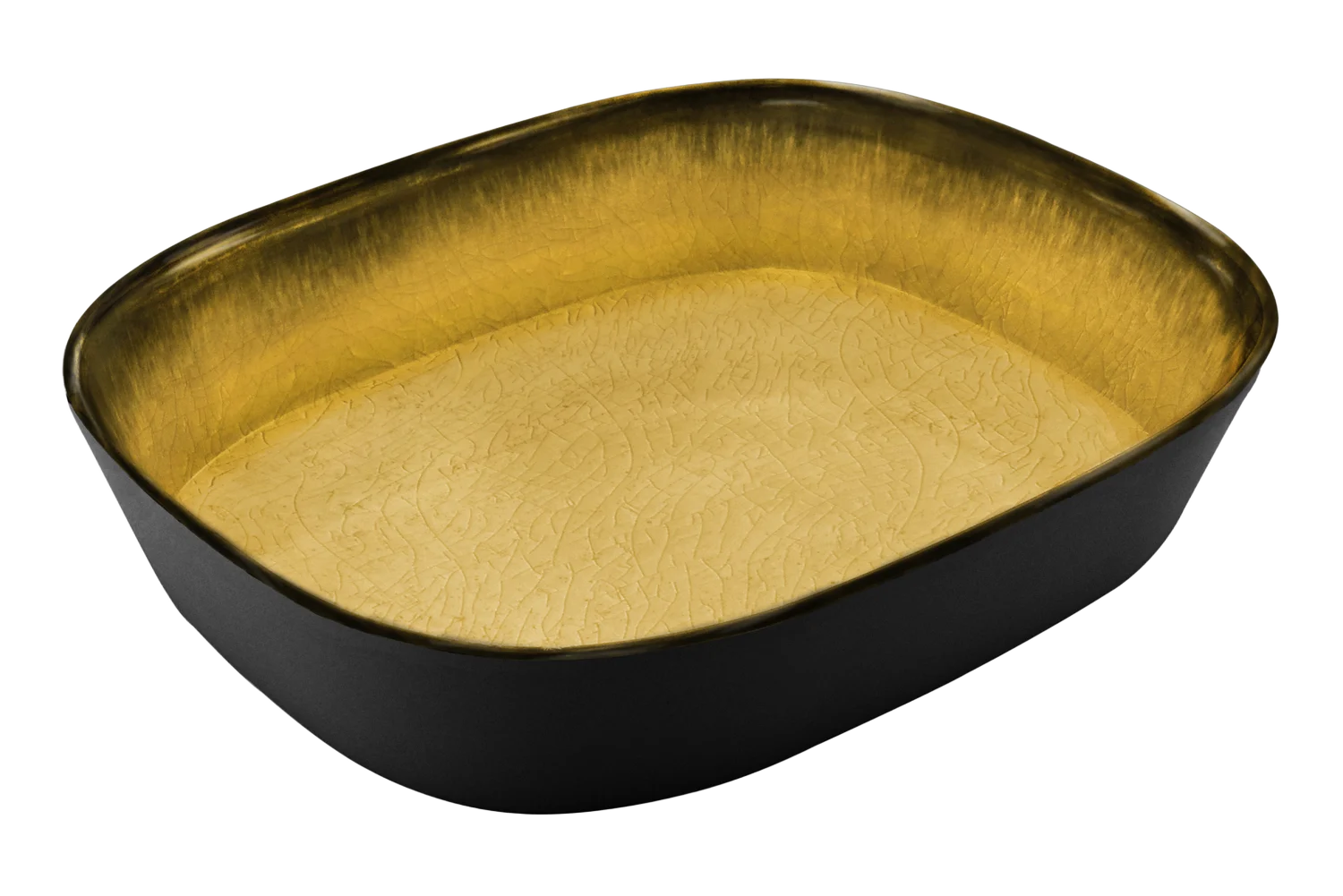 Efay Is Proud To Present The “Gastronom 1/2-65 Capsule Mustard/Black Melamine” – A Professional And Elegant Serving Utensil. This High-Quality Gastronomy Product, From Efay, Combines Modern Design And Optimal Functionality, And Is Suitable For Professional Kitchens, Buffets And Catering Events, While Ensuring A Luxurious And Impressive Appearance In Every Serving. Made Of Extremely Durable Melamine Material, The “Gastronom 1/2-65 Melamine” Is Resistant To Breakage, Easy To Clean And Maintain, And Ideal For Busy Work Environments. Its Standard Size (Gn 1/2-65) Allows For Seamless Integration Into Existing Serving Systems. Available In Trendy Mustard And Black Tones, It Is Perfect For Serving Salads, Side Dishes And Hot Or Cold Dishes In Hotels, Restaurants And Catering, And Provides A Practical And Aesthetic Solution Over Time.
