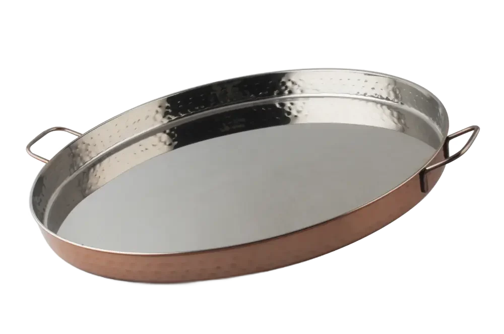 Meet The 36X3 Cm Copper Plated Hammered Tray, A Luxurious And Impressive Addition To Any Home. This Elegant Tray Combines Traditional Craftsmanship With Modern Design, Bringing With It A Touch Of Warmth And Elegance. Thanks To The Magnificent Copper Plating And Unique Hammered Texture, Each Tray Is A Work Of Art In Itself, Attracting The Eye And Conveying Uncompromising Quality. With An Ideal Size Of 36 Cm, This Serving Tray Is Perfect For Entertaining And Upgrades Any Table. Use It To Serve Drinks And Refreshments, Or As A Central Design Item That Gives A Luxurious Touch To The Living Room Or Dining Area. Its Durability And Beauty Make The Copper Plated Hammered Tray A Wonderful Gift For Design Enthusiasts And Those Who Appreciate Aesthetics And Quality. Add The Shine And Glow Of Copper To Your Home.