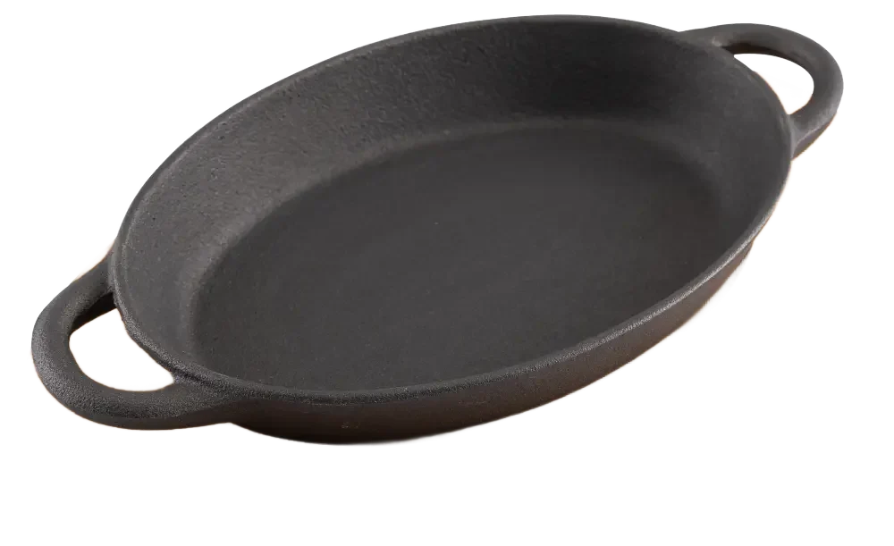 Upgrade Your Cooking And Serving Experience With A High-Quality Cast Iron Oval Pan Measuring 26X18 Cm. This Premium Product, Which Combines Classic Durability With Modern Design, Comes With A Dedicated Bamboo Bottom, Making It A Must-Have Item In Every Kitchen. This Cast Iron Pan Is Designed For Those Looking For An Elegant And Efficient Solution For Both Cooking And Serving. The Outstanding Advantages Of This Oval Cast Iron Pan Lie In Its Excellent Ability To Retain Heat And Distribute It Evenly, Ensuring Perfect Grilling, Precise Cooking And Effective Steaming. Its Oval Shape Is Ideal For Preparing Whole Fish, Large Pieces Of Meat Or Extra Long Vegetables. The Attached Bamboo Bottom Allows For Elegant And Convenient Serving Directly From The Stove Or Oven To The Table, While Preserving Surfaces And Adding A Luxurious Touch To The Meal. This Is A Multi-Purpose And Durable Pan That Will Upgrade Any Kitchen.