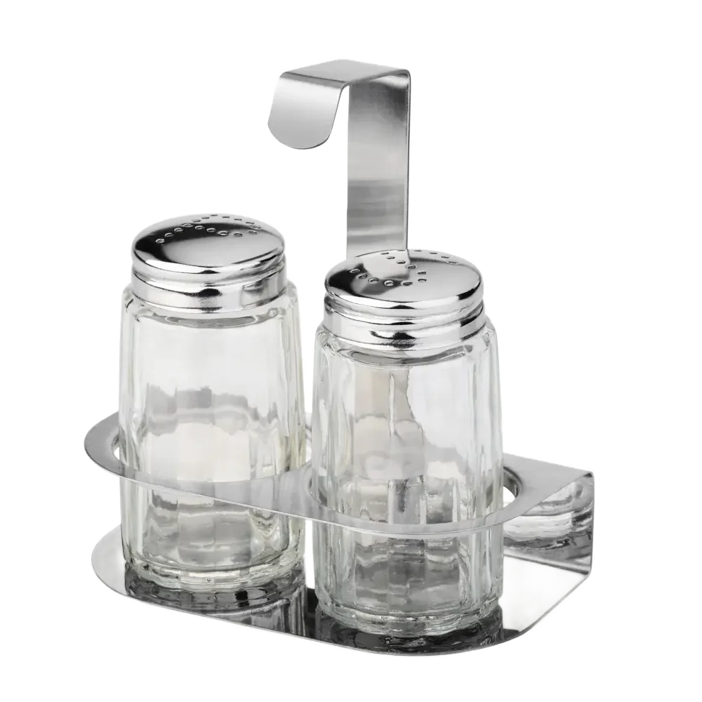 مرشات ملح زجاجية + حاملمرشات ملح زجاجية + حامل