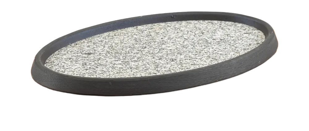 طبق حجري بيضاوي مع شواية ألومنيوم وقاعدة خشبية 28×18.5 سمطبق حجري بيضاوي مع شواية ألومنيوم وقاعدة خشبية 28×18.5 سم