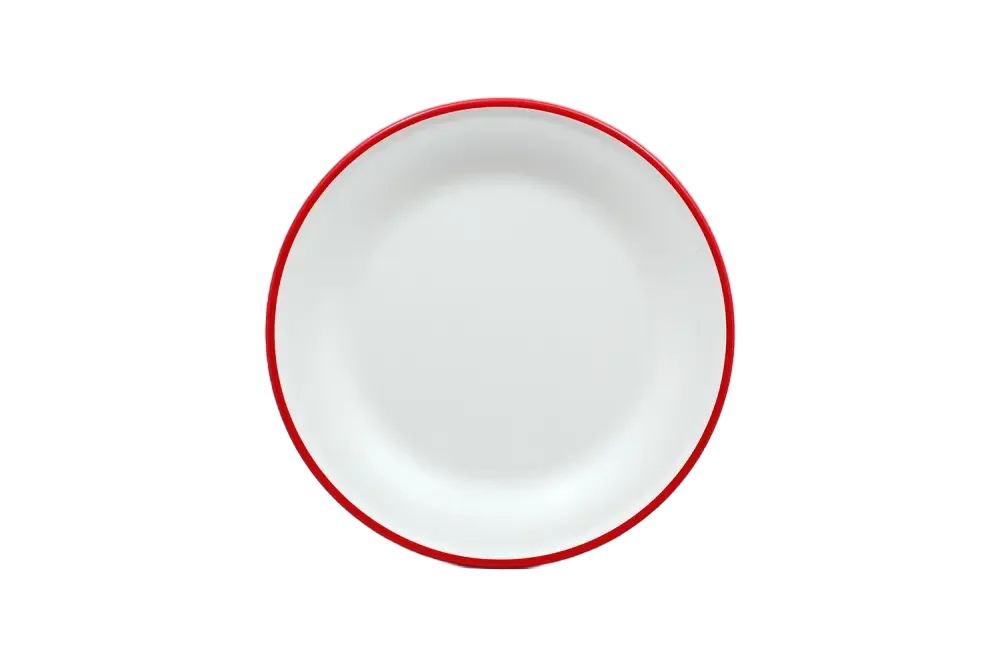 طبق أبيض يشبه المينا بشريط ميلامين أحمر ***2207094