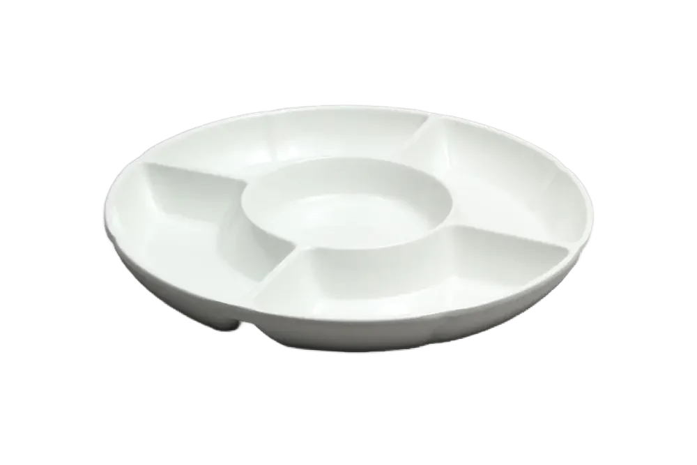 Meet The 4-Compartment White Melamine Cabaret From Efay, An Elegant And Practical Solution For Perfect Serving. Efay, Known For Its Quality And Design Products, Presents This Modern Serving Ware, Which Combines Delicate Aesthetics With Exceptional Durability. The White Melamine Cabaret With Its Unique “Camouflage” Design Will Upgrade Any Table And Provide A Spectacular Hosting Experience. This 4-Compartment Cabaret Is Made Of High-Quality Melamine, Which Ensures Long-Lasting Durability And Ease Of Cleaning. It Is Ideal For Serving A Wide Variety Of Foods – Snacks, Dips, Cut Vegetables Or Small Salads – And Allows Elegant Separation Between The Ingredients. With The Efay Melamine Cabaret, You Can Host In Style At Any Event, From Home Hosting To Parties And Catering. The Perfect Choice For Anyone Looking For Beautiful And Functional Melamine Serving Ware.