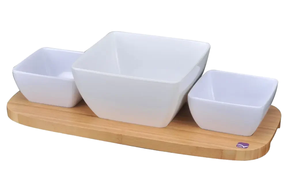 Meet The 46X21 Bamboo Wood Serving Set And 3 Bowls***600901, From The Leading Brand Efay, Which Combines Natural Beauty With Exceptional Functionality. This Luxurious Serving Set Includes A High-Quality Bamboo Wood Tray Measuring 46X21 Cm, Plus Three Elegant Melamine Bowls. It Is The Perfect Solution For Meticulous Hosting Or A Family Meal, And Gives Any Table A Designed And Inviting Look. The Outstanding Advantage Of This Serving Set Lies In The Durable And Designed Materials: The Bamboo Tray Provides A Warm And Natural Look, While The Melamine Bowls Are Strong, Easy To Clean And Ideal For Serving A Wide Variety Of Foods – From Snacks And Salads To Main Courses. Whether You Are Hosting Friends And Family Or Enjoying A Relaxed Evening, The Efay Serving Set Will Upgrade Any Table And Provide An Unforgettable Hosting Experience. Upgrade Your Serving With Efay!
