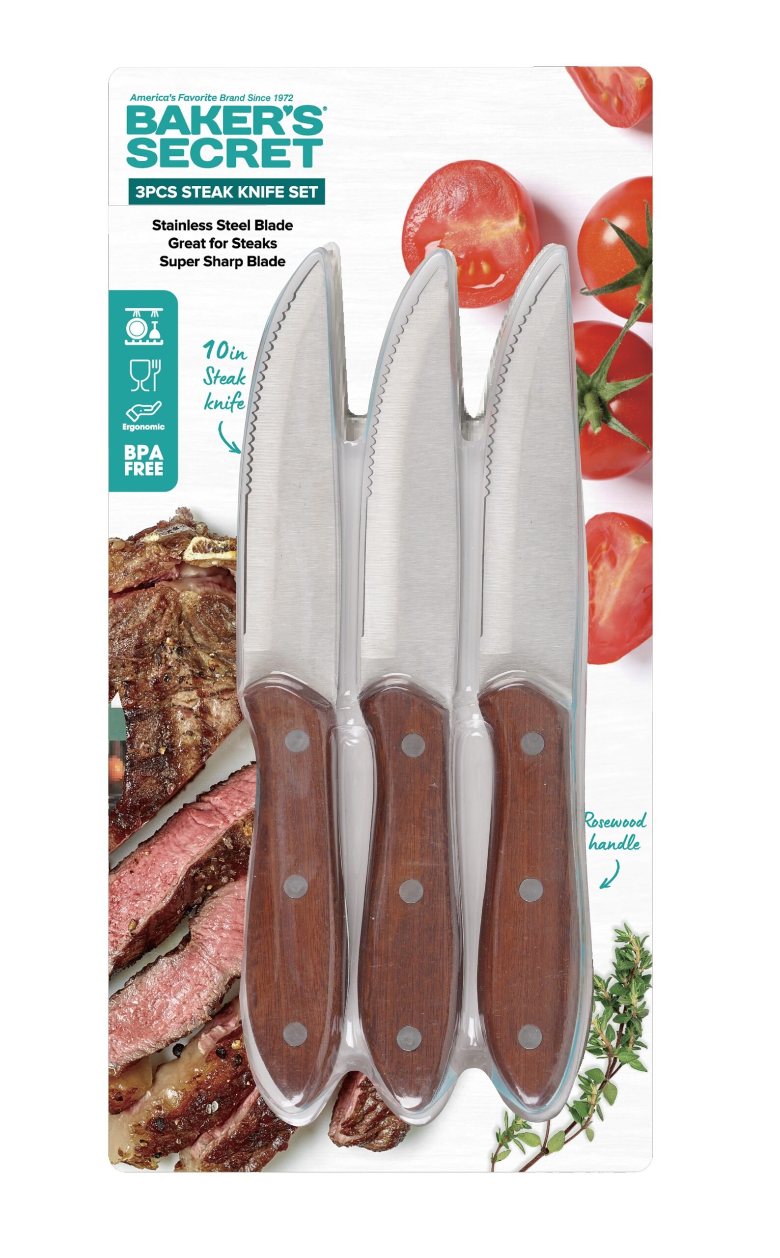 Upgrade Your Dining Experience With A Set Of 4 Brown Steak Knives 22 Cm From Baker’S Secret. Leading Manufacturer, Baker’S Secret, Brings You A Quality, Designed Knife Set, Which Ensures Perfect Cutting Of Every Piece Of Meat. This Is An Indispensable Set For Every Kitchen And Dining Area, Combining Functionality And High-Level Aesthetics. Each Knife In This Steak Set, With An Ideal Length Of 22 Cm, Has Been Carefully Designed With An Extremely Sharp Blade That Allows For Smooth And Precise Cutting Without Effort. The Brown Handles Provide A Comfortable And Secure Grip, Adding An Elegant Touch To Your Table. Whether For Luxurious Hospitality Or An Everyday Meal, Steak Knives From Baker’S Secret Will Turn Any Meal Into A Delightful Culinary Experience Thanks To Their Exceptional Durability And Performance.