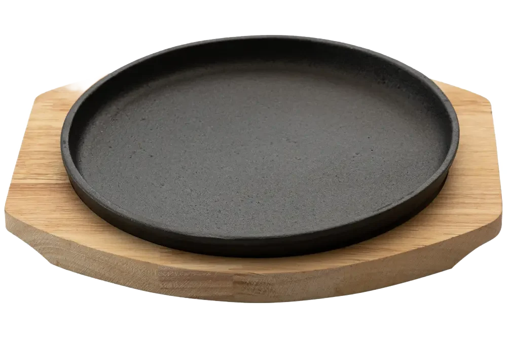 Welcome To The 22 Cm Cast Iron Platter With Wooden Base – The Perfect Solution For Stylish And Professional Serving In The Kitchen And At The Table. This 22 Cm Cast Iron Serving Plate Combines The Exceptional Durability Of Cast Iron With The Natural And Warm Beauty Of A Wooden Base. It Is Designed To Enhance Any Meal, From Preparation To Serving, And Ensure An Unforgettable Culinary Experience. Thanks To The Excellent Heat Retention Properties Of Cast Iron, This Cast Iron Plate Keeps Food Hot For A Long Time, Making It Ideal For Serving Sizzling Steaks, Wok Dishes, Omelets Or Any Dish That Requires Sustained Heat. The Insulated Wooden Base Not Only Adds A Rustic And Luxurious Aesthetic Touch, But Also Protects The Table From Heat. This Is A Durable, Easy-To-Maintain Plate That Adds Chic And Practicality To Any Kitchen.