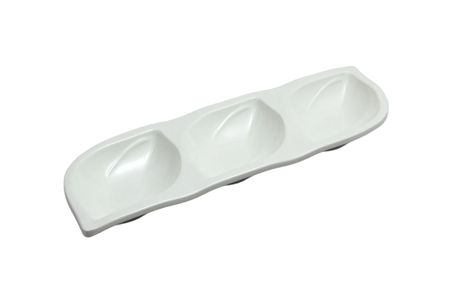 Meet The Kamoma 3-Piece Sauce Dish From Efay, The Ultimate Solution For Elegant And Practical Hosting. Made Of High-Quality And Durable White Melamine, This Sauce Dish Combines Smart Functionality With A Clean And Impressive Design. Efay, Known For Innovative Serving Utensils, Presents A Product That Will Upgrade Any Table And Event, And Guarantees Quality And Durability Over Time. The Unique Design Of The 3-Piece Sauce Dish Allows You To Serve A Wide Variety Of Small Dishes, Dips, Sauces Or Snacks At The Same Time, In An Organized And Inviting Manner. The Melamine Material Ensures Exceptional Resistance To Abrasion And Breakage, Along With Ease Of Cleaning And Maintenance. Its Ideal Dimensions (27X8.7X2.6 Cm) Make It Convenient And Compact, And Ideal For Everyday Use As Well As Special Occasions.