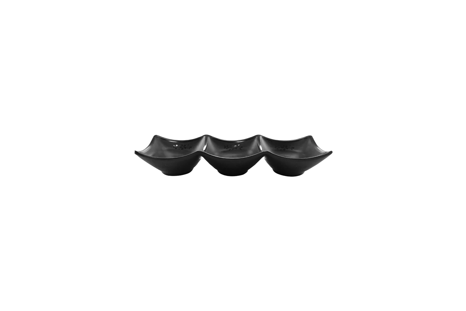 Meet The Square Sauce Dish Divided Into Three By Efay, An Elegant And Practical Serving Solution That Will Upgrade Any Table. This Sauce Dish, Measuring 24.3X8.4X4.4 Cm, Is Carefully Designed And Made Of High-Quality And Durable Black Melamine Material, Which Combines Beauty And Unique Functionality. Ideal For Serving A Variety Of Sauces, Dips, Small Snacks Or Appetizers, The Division Into Three Allows For Aesthetic And Convenient Separation. This Serving Utensil Excels In High Resistance To Breakage And Temperatures, Is Easy To Clean And Maintain, And Adds A Touch Of Modern Luxury To Any Event – Whether At Home, In A Restaurant Or At Business Events. Choose Efay For A Perfect Serving Experience.