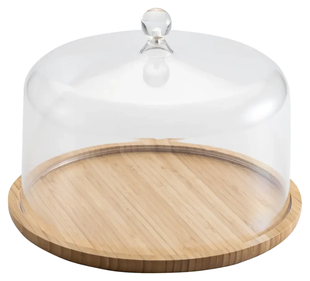 Meet The Perfect Solution For Serving And Storage: Round Bamboo Tray With Transparent Bell 27X20 Cm. This Elegantly Designed Product Combines The Natural Beauty Of High-Quality Bamboo With The Transparency Of A Serving Bell, Offering A Hosting Experience And Maintaining Freshness At The Highest Level. This Is A Must-Have Item For Anyone Who Loves To Serve In Style. The Bamboo Tray, With A Diameter Of 27 Cm And A Total Height Of 20 Cm, Is Perfect For Displaying Cakes, Cookies, Cheeses, Fruits And Sweet And Savory Minis. The Transparent Bell Keeps Food Fresh For A Long Time, Protects Against Pests And Allows For A Spectacular Visual Presentation. Turn Every Serving Into A Celebration With This Functional And Beautiful Serving Utensil, Which Fits Perfectly Into Any Kitchen Or Hosting Table And Enhances The Culinary Experience.
